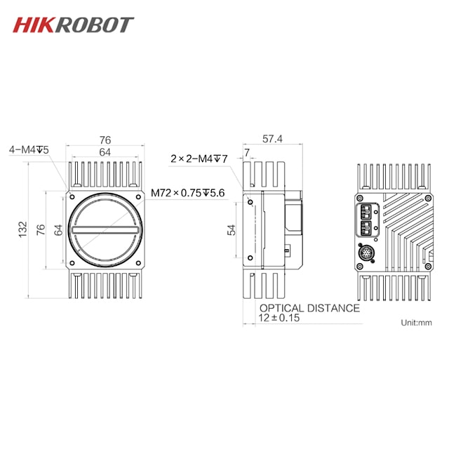 M72 *0.75, optical back focal length: 12 mm (0.5″), applicable to F-mount via lens adapter