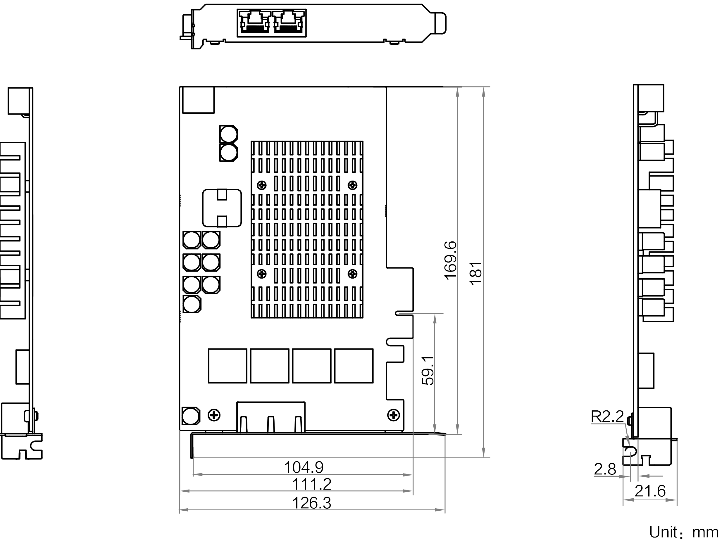 181 mm × 126.3 mm × 21.6 mm