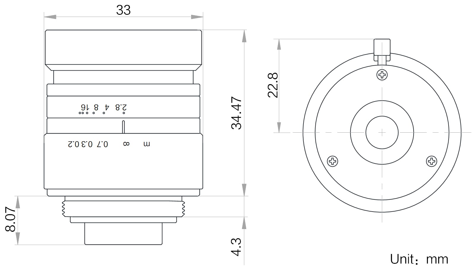 8mm, F2.8, 1/1.8″, 6 million resolution, C-mount lens